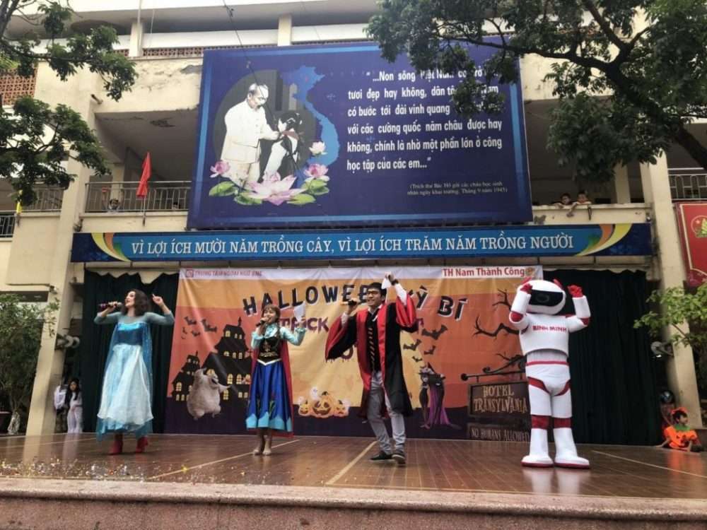 Ngày 31/10/2019, trường TH Nam Thành Công đã diễn ra chương trình Halloween Kỳ Bí – Trick or treat. Đây là chương trình do Trung tâm Ngoại Ngữ Bình Minh (BME) phối hợp với nhà trường tổ chức nhằm tạo ra sân chơi giao lưu và tìm hiểu kiến thức cho các bạn học sinh.