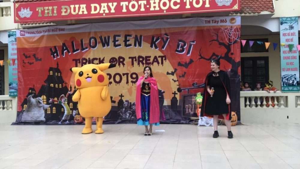 Ngày 24/10/2019, tại trường TH Tây Mỗ đã diễn ra chương trình Halloween Kỳ Bí – Trick or treat. Đây là chương trình do Trung tâm Ngoại Ngữ Bình Minh (BME) phối hợp với nhà trường tổ chức nhằm tạo ra sân chơi giao lưu và tìm hiểu kiến thức cho các bạn học sinh.