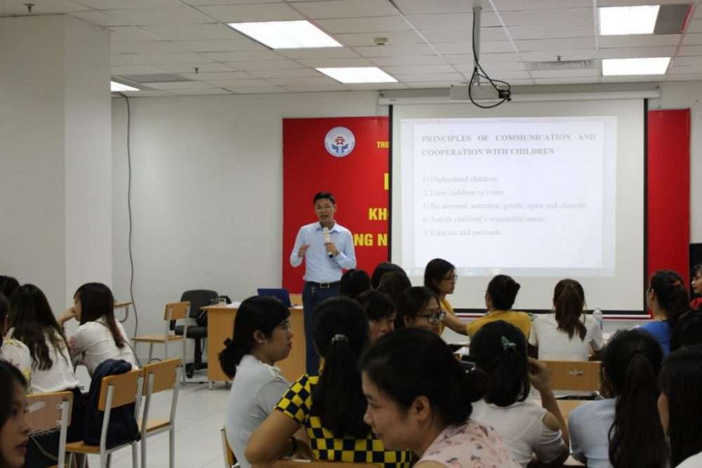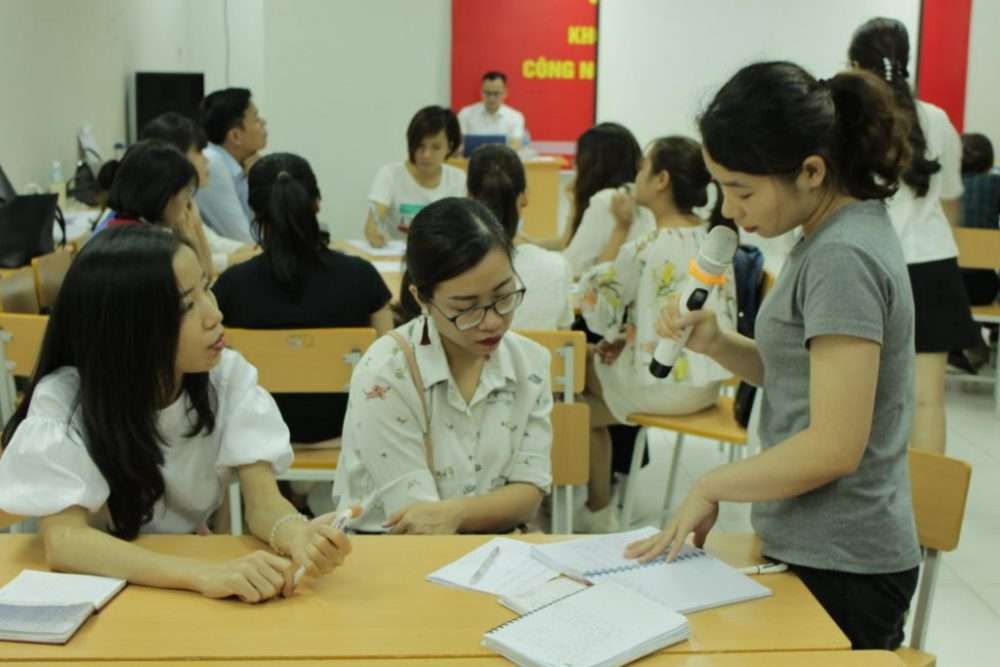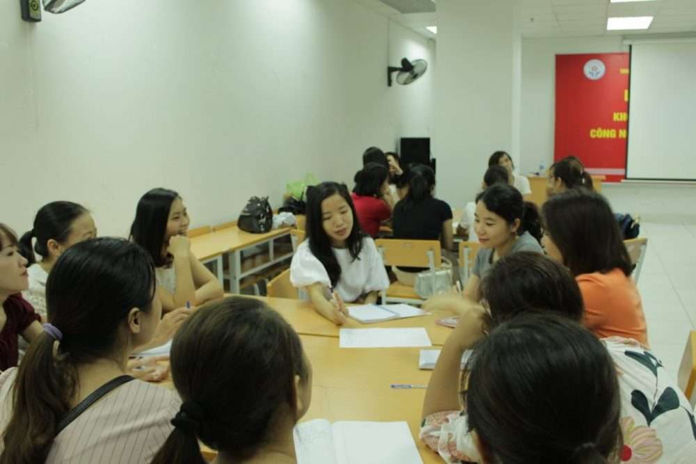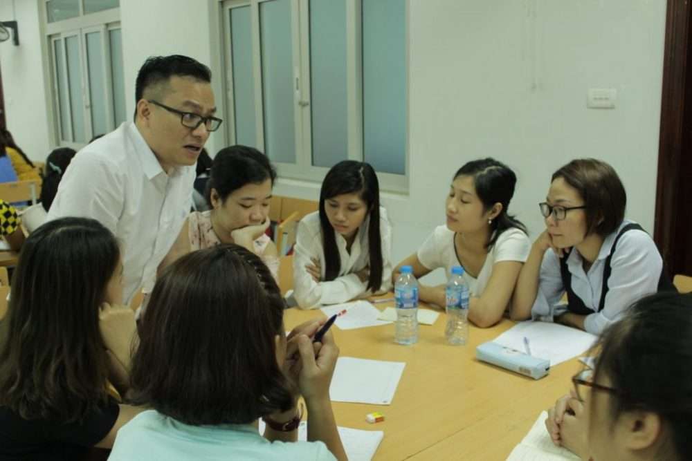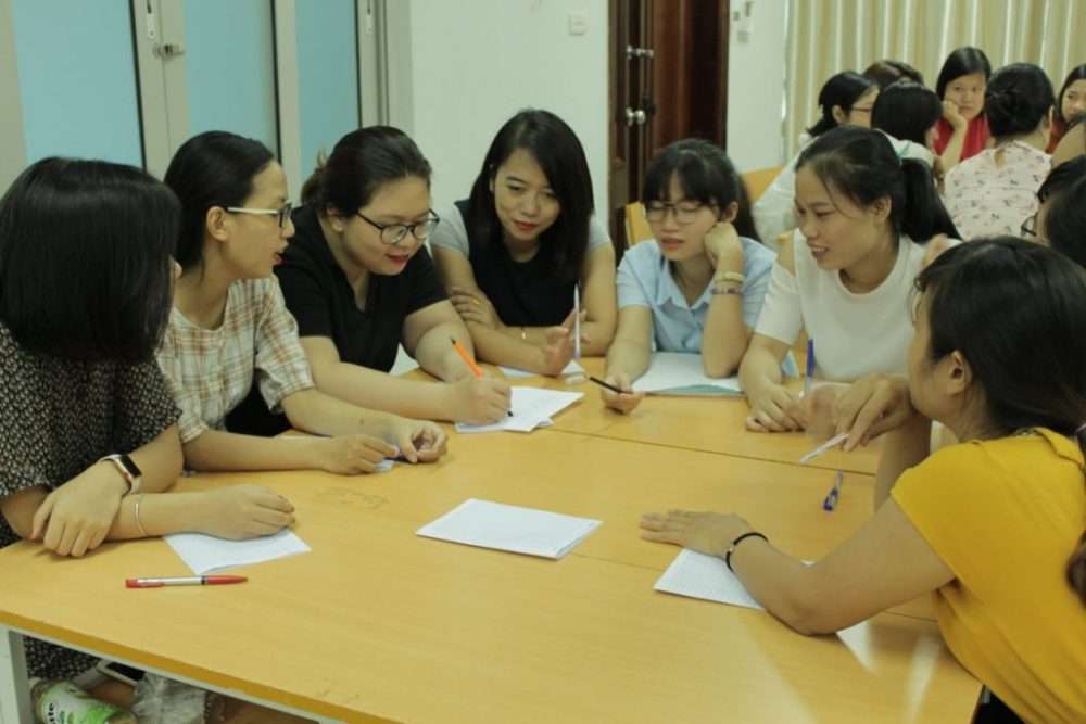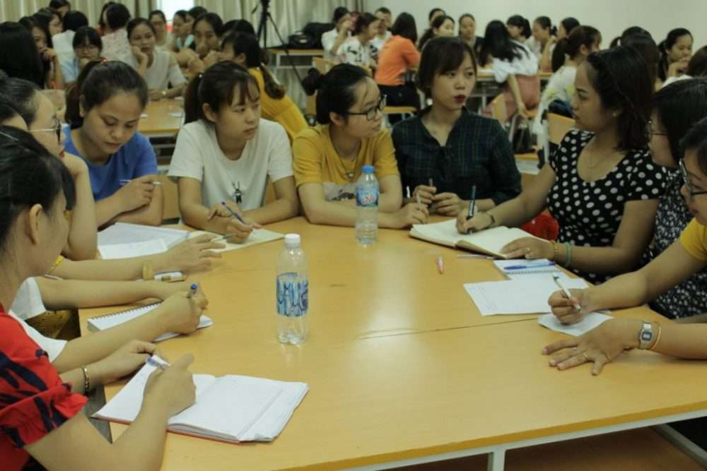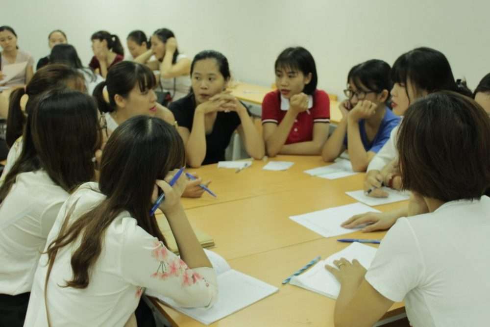 Các thầy cô giáo thuộc Trung tâm Ngoại ngữ BME hiện đang giảng dạy tại các trường Mầm non trên địa bàn thành phố Hà Nội và những thầy cô mới đều đã có mặt đông đủ tại hội trường để lắng nghe những câu chuyện, sẻ chia những kinh nghiệm nghệ nghiệp quý báu dưới sự hướng dẫn của thầy Nguyễn Minh Tuấn. Cả lớp được chia thành 5 nhóm nhỏ, mỗi nhóm khoảng 10 thầy cô giáo, sẽ cùng nhau thảo luận về các tình huống thực tế mà thầy Tuấn đưa ra và tìm hướng giải quyết một cách hợp lí nhất.