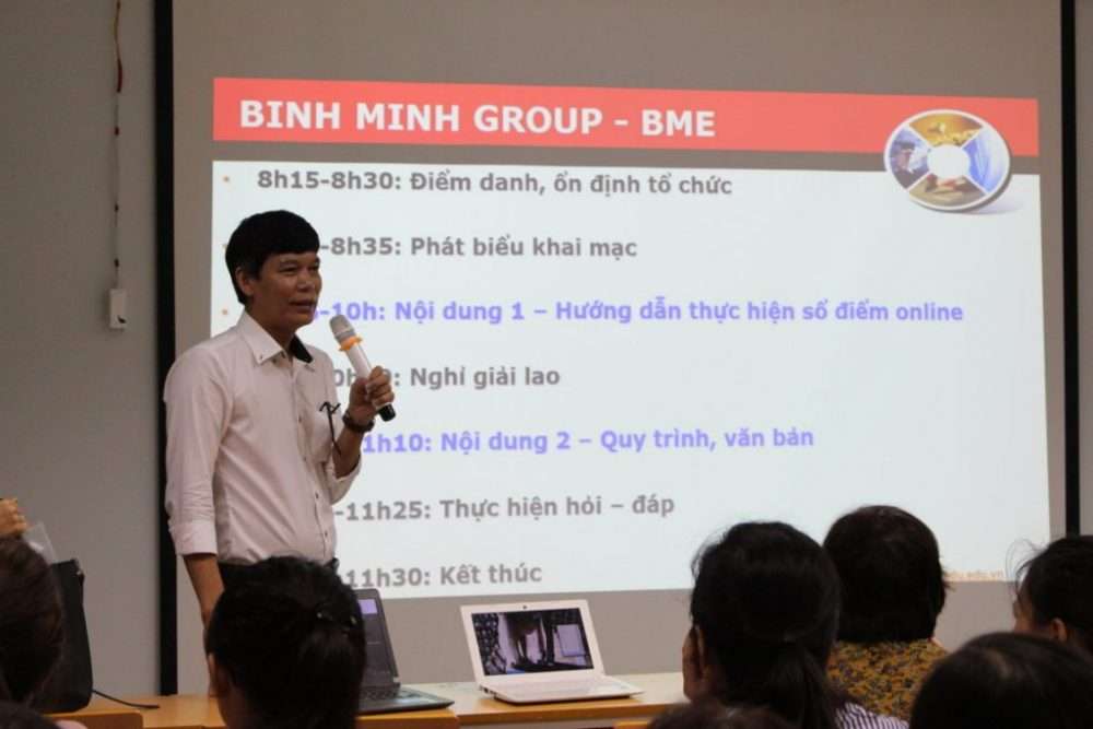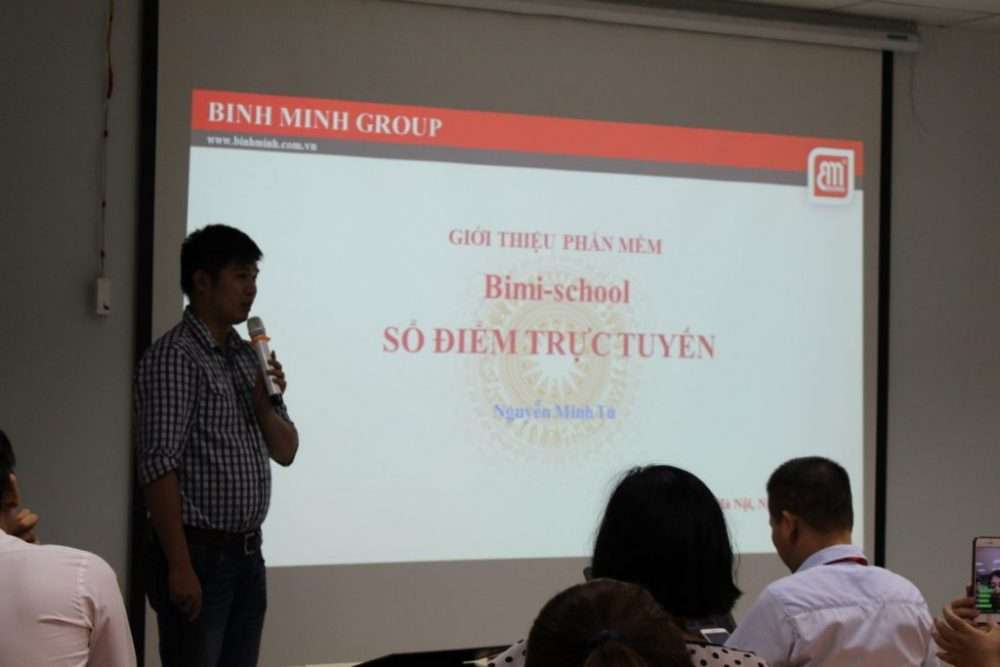 Tại buổi tập huấn, đại diện Công ty Cổ phần Công nghệ Bình Minh, anh Nguyễn Minh Tú đã giới thiệu tới các thầy cô giáo phần mềm BIMISCHOOL. Phần mềm Bimischool được Công ty Bình Minh nghiên cứu và phát triển trong nhiều năm qua, bước đầu đạt được những thành công nhất định và nhận được phản hồi tích cực từ các nhà trường khi ứng dụng phần mềm này vào công tác nhập điểm và quản lý sổ điểm trực tuyến. Việc ứng dụng sổ điểm trực tuyến thông qua phần mềm Bimischool giúp các thầy cô giáo tiết kiệm tối đa thời gian, tránh những rủi ro sai sót khi nhập điểm bằng các phương thức truyền thống và đặc biệt là vô cùng thân thiện với người sử dụng.
