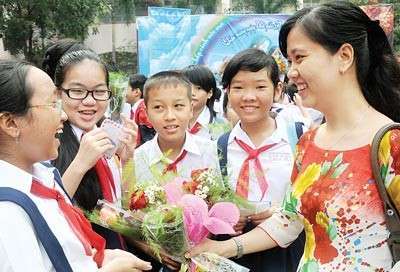 Học sinh Việt Nam tặng hoa cô giáo nhân ngày 20/11
