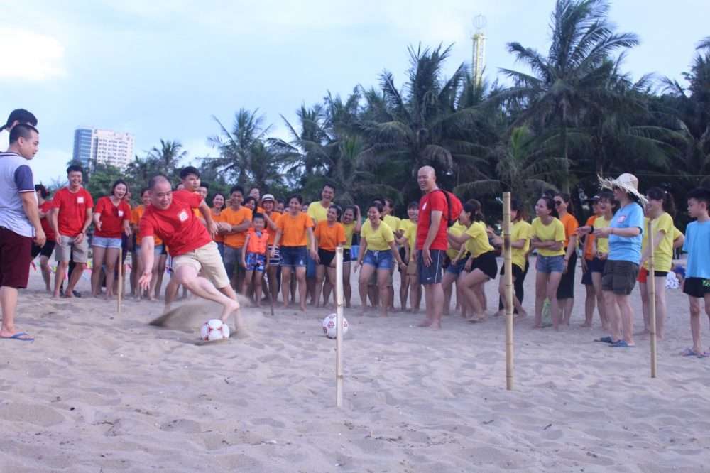 Chiều 15 giờ cùng ngày, cả đoàn tập trung tại sảnh khách sạn để chụp hình lưu niệm, sau đó cùng ra bãi biển để chuẩn bị tham gia vào các hoạt động Team-Building vô cùng sôi động và lý thú. Tập thể công ty chia ra thành 4 đội chơi: đội giáo viên Tiểu học, đội giáo viên Mầm non, đội Công ty và đội văn phòng BME. Các đội chơi tham gia rất nhiệt tình và sôi nổi, các trò chơi được BTC điều phối nhịp nhàng, thu hút rất nhiều khán giả xung quanh khu vực bãi biển đến theo dõi và cổ vũ cho các đội.