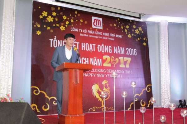 Sau tiết mục văn nghệ chào mừng, Ông Nguyễn Hồng Hải- Tổng giám đốc Bình Minh Group lên phát biểu tổng hợp báo cáo hoạt động của Công ty trong năm 2016 và kế hoạch năm 2017.
