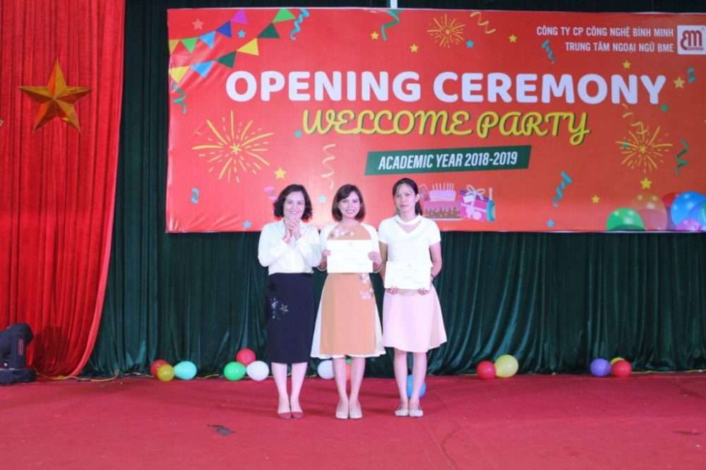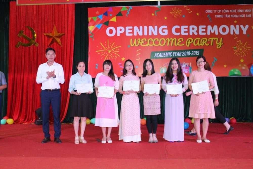 Cũng tại buổi lễ, để ghi nhận những kết quả đã đạt được trong năm qua của Trung tâm ngoại ngữ Bình Minh- BME, Công ty đã khen thưởng và trao giấy chứng nhận cho những giáo viên Việt Nam và giáo viên Nước ngoài có thành tích giảng dạy tốt trong năm 2018 của Trung tâm BME.