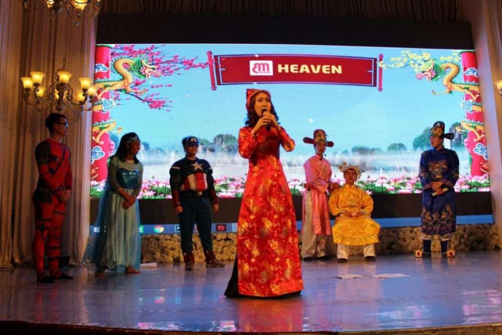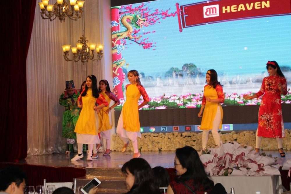 Để hâm nóng bầu không khí của bữa tiệc ngày hôm nay, các cán bộ của bộ phận Quan hệ công chúng thuộc Trung tâm Ngoại ngữ BME đã mở màn bằng những tiết mục hát, múa với chủ đề mùa xuân. Các ca khúc xuân cùng giai điệu rộn ràng vui tươi đã mang lại sự hứng khởi cho toàn bộ khán giả và khách mời có mặt tại buổi lễ.