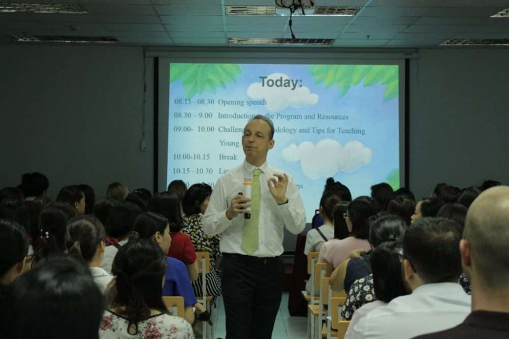 Bên cạnh đó, giảng viên Persey cũng đã hướng dẫn cho các giáo viên các bước để chuẩn bị giáo án thông qua các tài liệu của giáo trình Explore Our World. Với những bước đã được hướng dẫn, các giáo viên tham gia buổi tập huấn đã nắm được những cách thức để tự xây dựng cho mình một bài giảng đủ sức cuốn hút đối với học sinh lứa tuổi tiểu học.