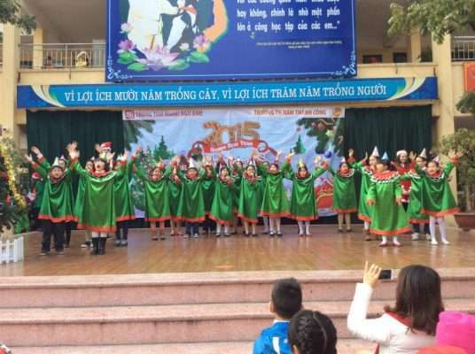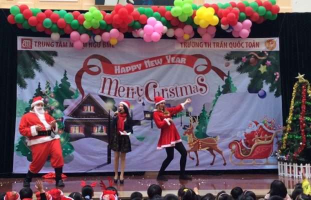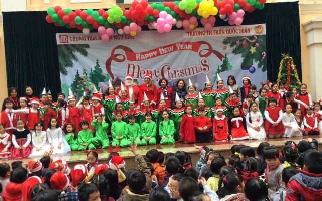 Cỗ xe tuần lộc chở ông già Noel tiếp tục lăn bánh đến trường tiểu...