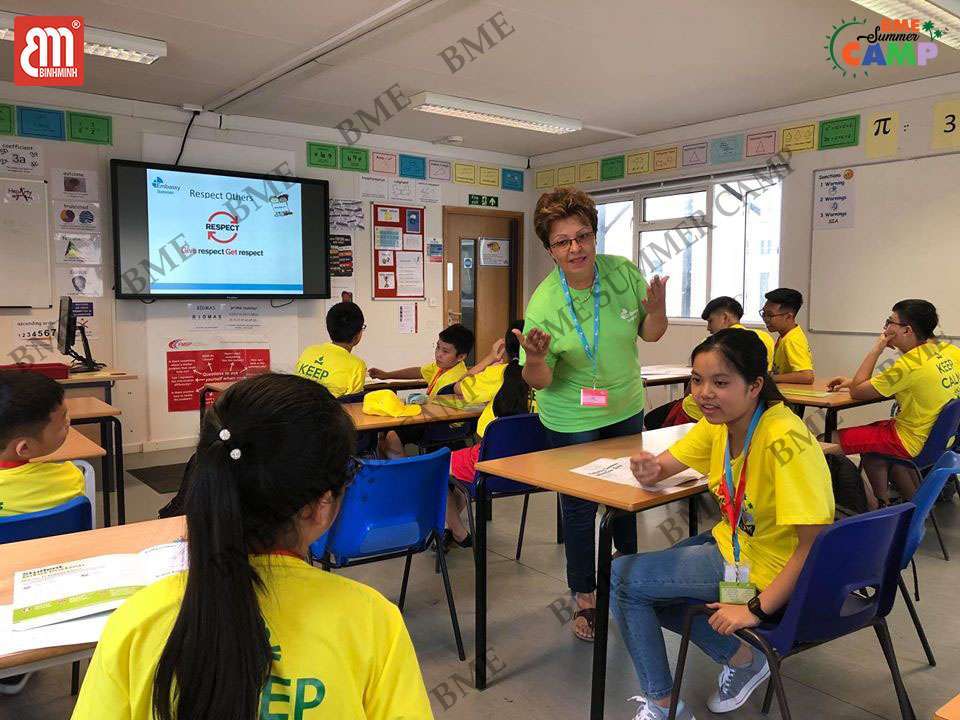Tham gia trại hè Quốc tế BME, con được tham gia khóa học tiếng Anh cùng với giáo viên bản xứ. Bắt đầu từ những điều căn bản nhất như: giao tiếp hằng ngày trong cuộc sống cho đến các bài thuyết trình trước đám đông, các con phải cho thấy được sự sẵn sàng hội nhập mọi lúc mọi nơi của bản thân. Trại hè Quốc tế BME với giao tiếp và ứng xử 100% bằng Tiếng Anh sẽ giúp các con có được một trải nghiệm rõ ràng và chân thật nhất về môi trường quốc tế cũng như tự tin khi giao tiếp với người nước ngoài.