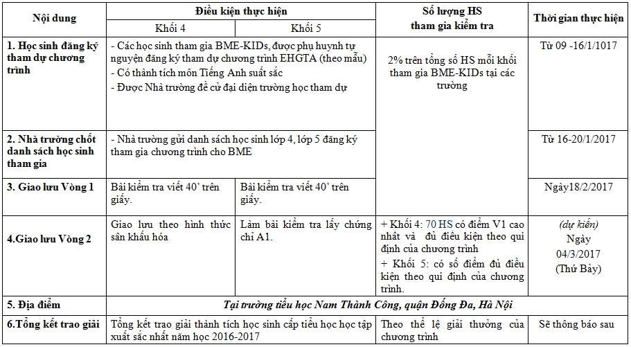 - Một số lưu ý với các học sinh tham gia dự chương trình giao lưu “Em học giỏi tiếng Anh” do BME tổ chức lần thứ 4, năm học 2016-2017: