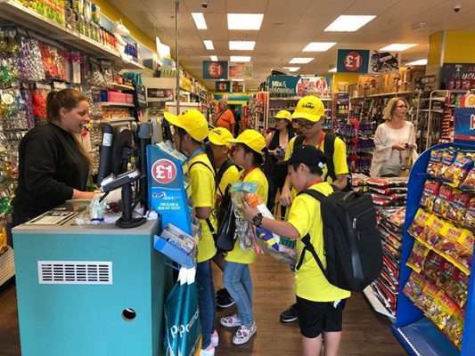 Các thành viên của trại hè Anh quốc tự mua đồ và thanh toán cho món đồ của mình.
